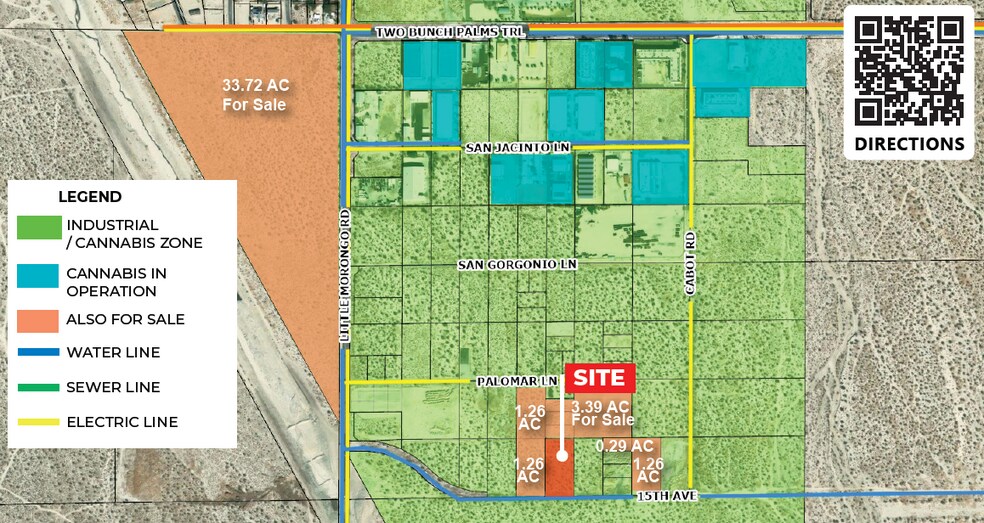 ¦ Previously sold in 2017 for $275,000 ¦ Lowest priced parcel in the Industrial zone ¦ Desert Hot Springs is the #1 location in Southern California with over 1,400 acres zoned for unlimited cannabis cultivation, extraction, and manufacturing with CUP ¦ Ideally located next to Palm Springs and has close I-10 access to serve all of Southern California ¦ Located in the Desert Hot Springs Industrial Park