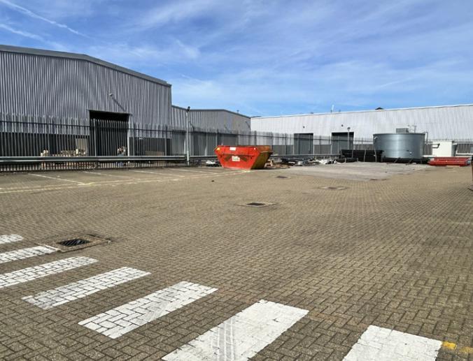 Constructed with a steel portal frame, the property features brick and profile metal external cladding. It offers two-storey office accommodation at the front with a brick façade and glazing.