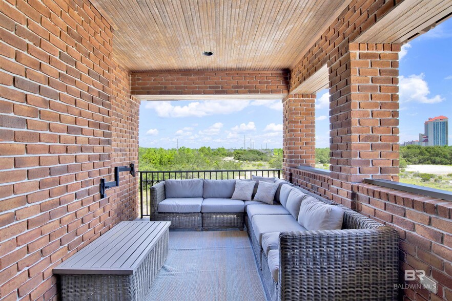 Unique opportunity to own this centrally located unit in Orange Beach. This 2 bedroom 2 bath condo sits directly across the street from the Gulf. Front porch features Gulf views & back porch overlooks a peaceful pond. Condo features a oversized primary bedroom with oversized custom closet. Reading lights over the bed. Spacious primary bath with double vanities & lots of storage. Kitchen features granite countertops & a GAS stove. Desk workspace in kitchen. Tile throughout & carpet In the bedrooms. Back balcony has gas as well. Laundry room has plenty of shelving for storage. High ceilings & crown molding throughout. Very peaceful & private. You'll also enjoy direct access to Gulf State Park, where over 6,000 acres of protected natural habitat offer opportunities for biking,jogging, fishing, and exploring nature. Neighborhood beach access & large neighborhood pool. Seller is a licensed real estate agent. Buyer to verify all information during due diligence.