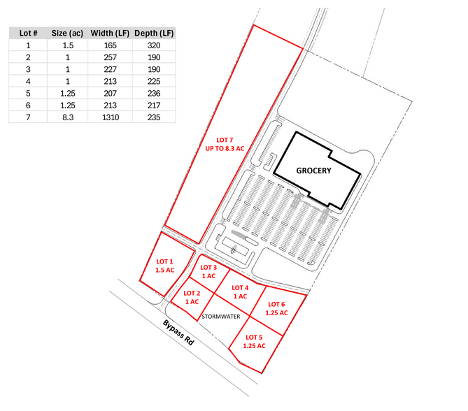 - +/-1 AC up to 8.3 AC of retail development lots for sale.