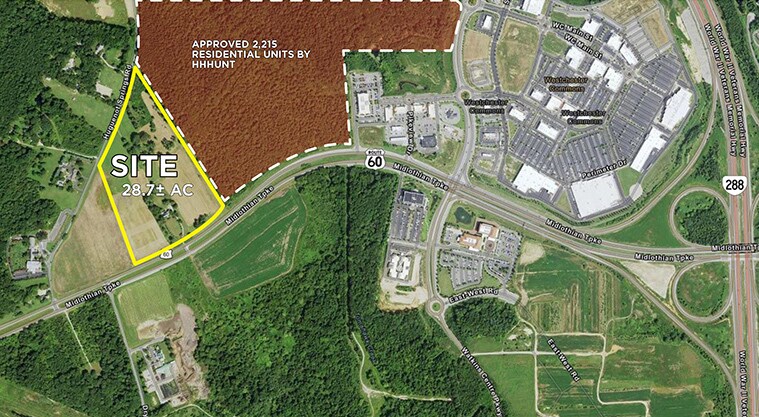 28.693± acres for sale Zoned I-2 (General Industrial District) Large storage, sales, & manufacturing facilities permitted Water available Rapidly developing Midlothian area One mile from Route 60 and S.R. 288 Interchange