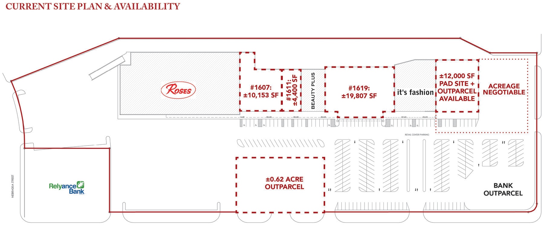 - • Established shopping center serving the primary retail corridor of East Harding Avenue