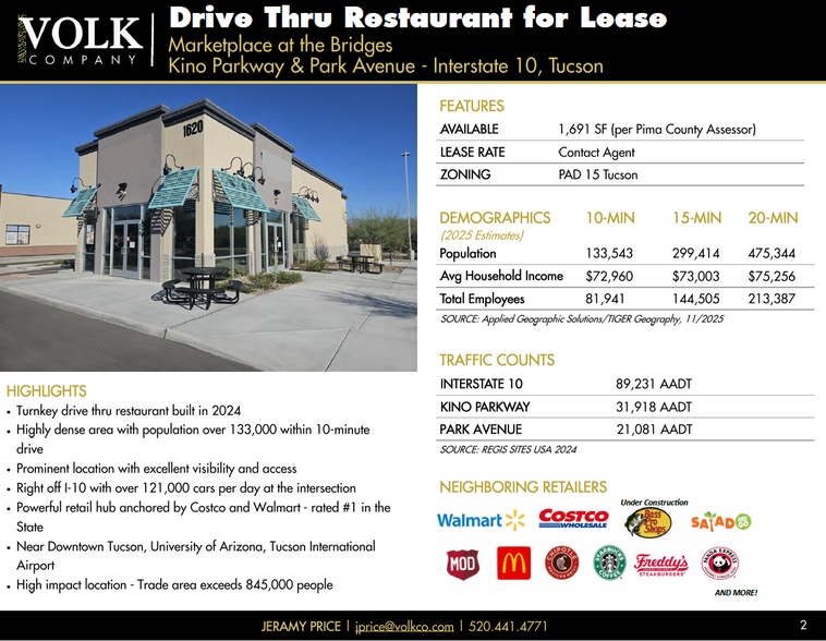 Drive Thru Restaurant for Lease, Tucson 1620 Tucson Marketplace blvd 1,691 SF of Retail Space Available in Tucson, AZ 85713