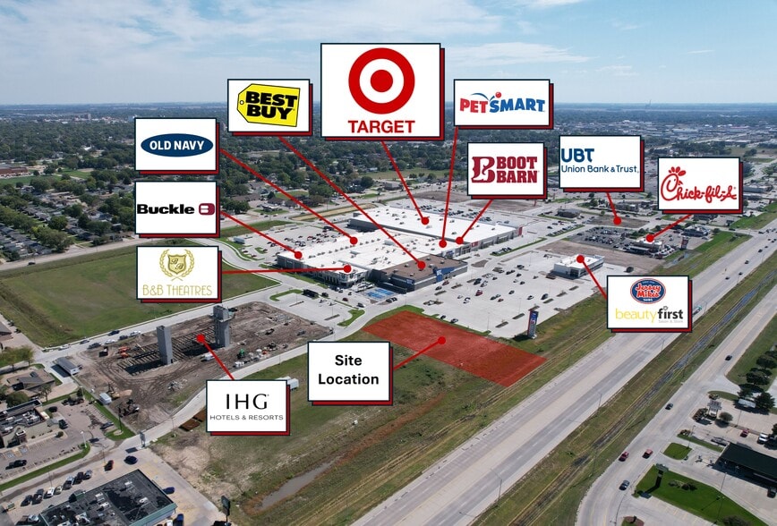 ? Conestoga Marketplace - .93 Acre Ground Lease ? Target - 150,000 SF Grocery, Apparel, Retail Store ? 140,000 SF National Retail Space Including: American Eagle, Bath & Body Works, B&B Theatres, Best Buy, Buckle, Carter’s, Glik’s, Maurices, Old Navy, PetSmart, Spencer's, Tradehome Shoes and more! ? 275 Unit Luxury Multi-Family Development ? New 150 room IHG Brand Hotel - Opening 2026 ? New-To-Market Restaurants ? 40,000 + Vehicles Per Day (Hwy 281, 13th Street, Webb Road) ? Central Nebraska’s Primary Retail Trade Area