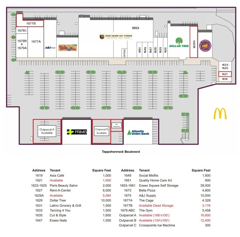 124'x100' outparcel available at the Essex Square Shopping Center.