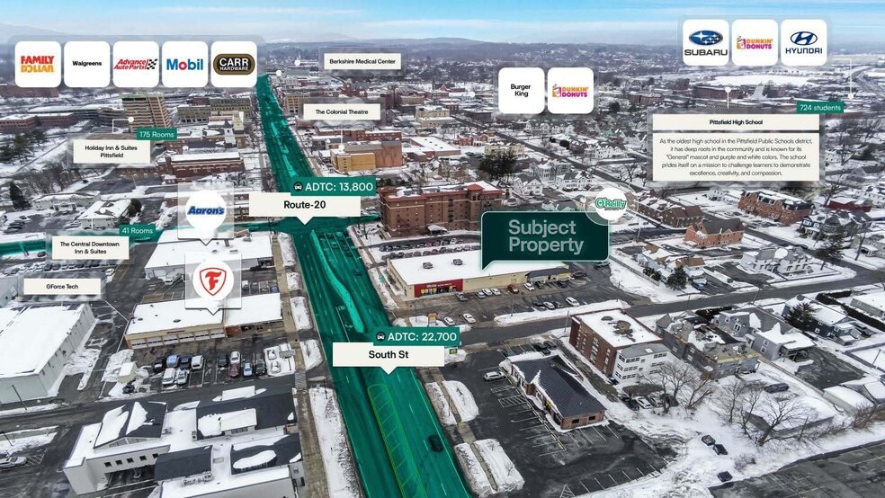 Surmount is pleased to present the exclusive listing for an O'Reilly Auto Parts Strip Center located at 163 South St, Pittsfield, MA 01201. The site consists of roughly 13,750 rentable square feet of building space on an estimated 0.89-acre parcel of land. The weighted average lease term is 9.80. The current annual net operating income is $217,521.