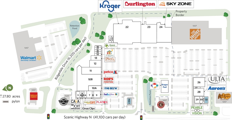 | Total Space Available | 2,800 SF | Frontage | 1,560’ on Scenic Hwy |
