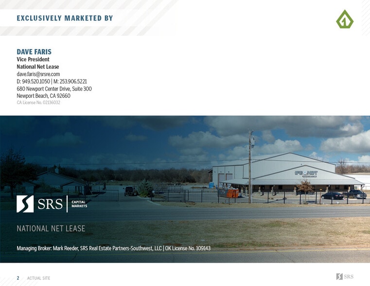SRS National Net Lease is pleased to offer the opportunity to acquire the fee simple interest (land & building ownership) in a new construction, corporate guaranteed (NYSE: SITE | S&P: BB), SiteOne Landscape Supply investment property located in El Reno, Oklahoma (Oklahoma City MSA). The tenant, SiteOne Landscape Supply, LLC, recently signed a brand new 10 year lease with 3 (5-year) options to extend, demonstrating their commitment to the site. The lease features 2% annual rental increases throughout the initial term and each option period, providing a strong hedge against inflation. The lease is NN+ with limited landlord responsibilities making it an ideal, low-management investment opportunity for a passive investor. SiteOne is a premier provider in the landscape supply industry, boasting a market capitalization of nearly $6.5 billion and an extensive network of over 690 locations nationwide. The property is situated on a large 9+ acre parcel, featuring approximately 2.75 acres of outdoor storage, providing ample space for equipment, inventory, and operational flexibility.