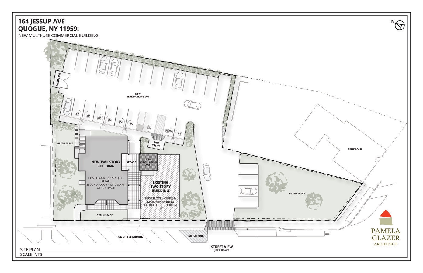 Presenting a prime commercial leasing opportunity at 164 Jessup Ave, Quogue, NY - **Only one space left!!**. This brand new construction commercial boutique shopping center offers a coveted corner location at Jessup Avenue & Quogue Street, providing high visibility and accessibility. The property boasts 29 private parking spaces on site, ensuring convenience for both tenants and clientele. With custom build-out options available, this versatile space can be tailored to your specific business needs. The property is located on the same block as the Quogue Hampton Jitney Bus Stop, across the street from the Quogue Club (a hotel and private dinner club), two doors from the wildly popular Schmidt's Country Market and next door to Beth's Cafe (a high end breakfast, lunch spot and smoothie bar). Don't miss the chance to secure a prominent presence in this thriving area. Experience the benefits of a thoughtfully designed property that caters to modern commercial demands.