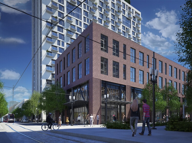 4,000 SF of retail space below 341 residential units & 25,000 SF of creative office space. Below grade, secure parking spaces - a rare amenity for urban retail developments. 18 - 25 foot ceiling heights with potential for mezzanine space. Towering glass lines in excess of 16 feet. Targeting LEED Gold Certification. Large outdoor patio opportunities.