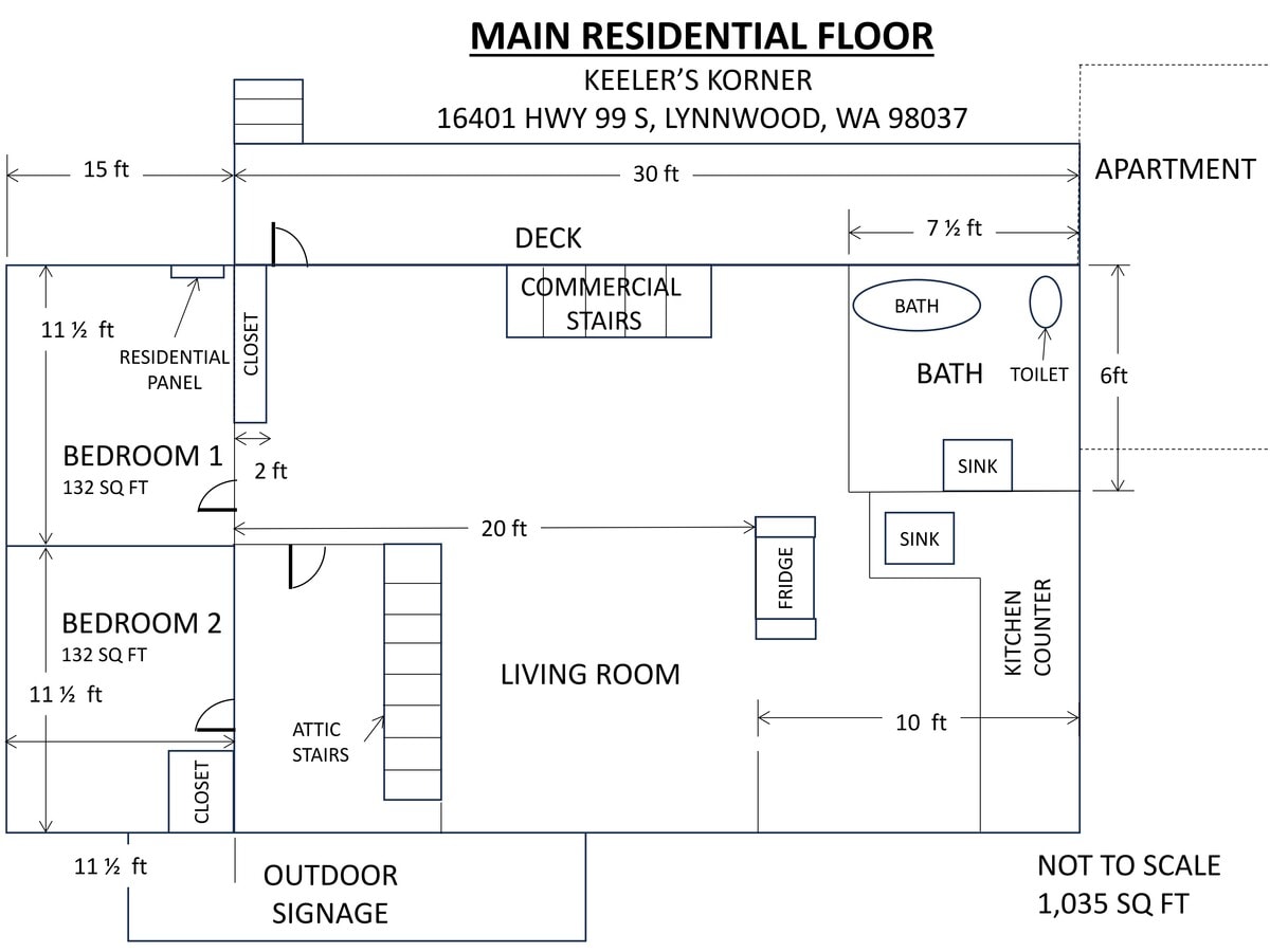 Keeler’s Korner is a 2,840 SF mixed-use commercial property and designated historic landmark, prominently located on a high-traffic stretch of Highway 99 in Lynnwood. Originally built in 1927 as the first gas station between Seattle and Everett, the property carries a unique historical significance while offering functional, modern-use potential. The ground-floor commercial unit provides excellent street frontage and visibility, making it ideal for a retail storefront, professional office, or medical/clinical use. The space includes a private restroom and benefits from consistent drive-by traffic and strong signage exposure. Approximately 7–8 parking spaces are available along Highway 99. Above the commercial space are two residential units with flexible use potential. The main residence includes a 2-bedroom, 2-bath layout with a large loft, while a separate studio unit with its own private entrance from 164th Street offers additional rental or owner-occupant flexibility. An additional 2–4 parking spaces serve the residential units. This is a rare opportunity to lease a true landmark mixed-use property with multiple configuration options—ideal for an owner-operator seeking on-site living, supplemental income, or expanded workspace integrated with the commercial unit. Lease Type: NNN