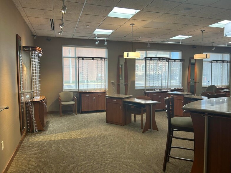 Used as a former Eye Clinic, this space is set up with reception and waiting area, private offices, examination rooms, secured storage, break room, private restrooms, this space is fairly open concept with private offices outlining the space. Easily converted to fit your needs.