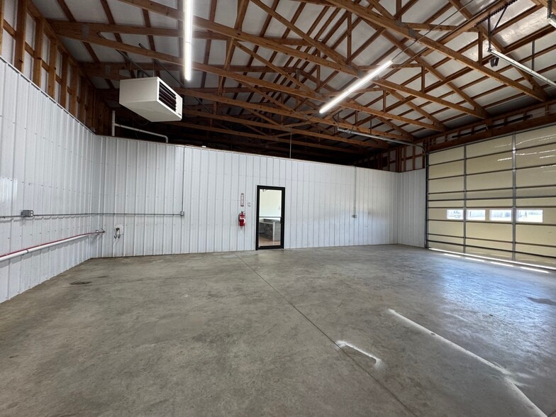 - Shop/warehouse with two 12x12 overhead doors, heater, sink, and overhead storage.