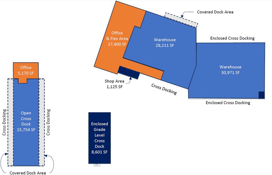 77,708 SF warehouse with 17,400 SF of dedicated office, 35- docks with cross dock access and 2-drive in doors. Secure Site with Fence and Security Cameras. Guard Checkpoint at Entry/Exit with Keypad.