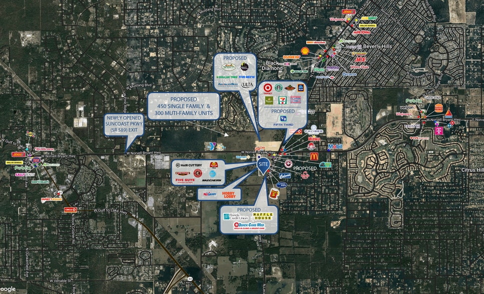 Multiple outparcels available in Lecanto, FL zoned: GNC General Commercial Outparcel acreage can be adjusted to accommodate different uses Citrus County DOT has a road-widening project for CR 491 proposed to begin in 2023. This project will widen CR 491 to four lanes and will add a traffic signal at W Horace Allen Street Conveniently located in Citrus County just minutes from the Black Diamond Ranch, Citrus Hills, and Pine Ridge Developments Nearby retailers include Walmart, Mavis Tire, McDonald's, Wendy's, Wawa, and Culver's Proposed area retailers include Target, Aldi, Panera, 7-Eleven, Starbucks, Texas Roadhouse, Hobby Lobby, PetSmart, Tidal Wave Car Wash, Panda Express, Arby's, and Glory Days Grill