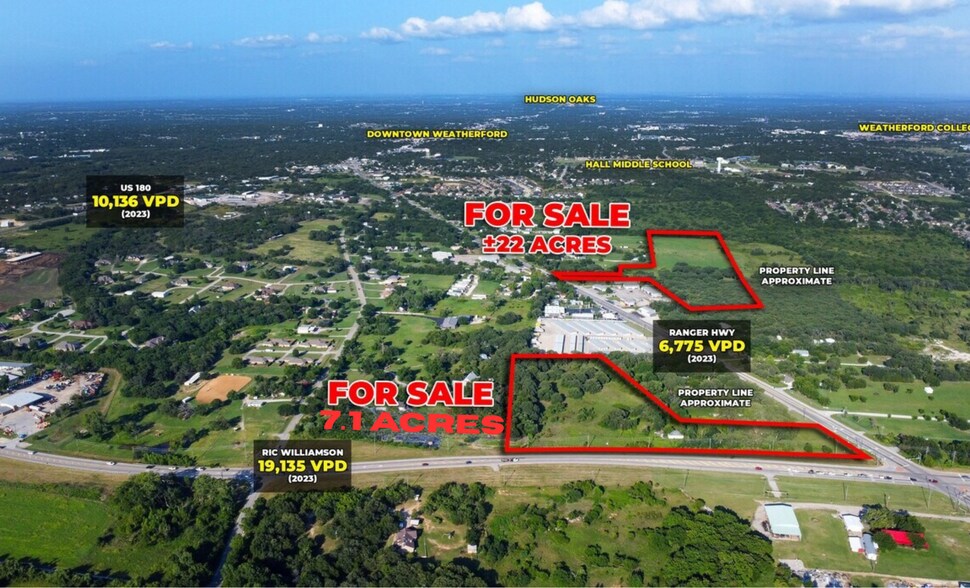 Positioned along the highly trafficked Ranger Highway corridor in Weatherford, this prime commercial property offers exceptional visibility and accessibility just minutes from Interstate 20. Surrounded by ongoing growth and development, the property is ideally suited for a variety of uses including retail, office, industrial, or investment purposes. Its strategic location provides convenient access to major transportation routes while benefiting from strong area demographics and increasing commercial activity. Whether you're an owner-user or investor, this site presents a rare opportunity to secure a foothold in one of North Texas’ expanding markets.