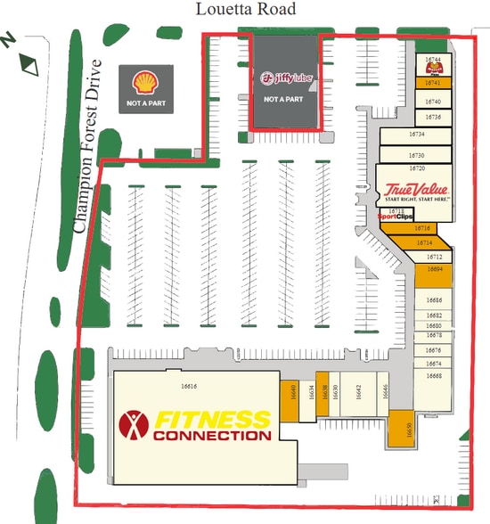 Fitness Connection anchored shopping center on Louetta and Champion Forest with exposure to over 50,000 cars per day and average household incomes exceeding $150,000. Other national and regional tenants include True Value Hardware, Sport Clips, Kid 2 Kid, Marco's Pizza and more.