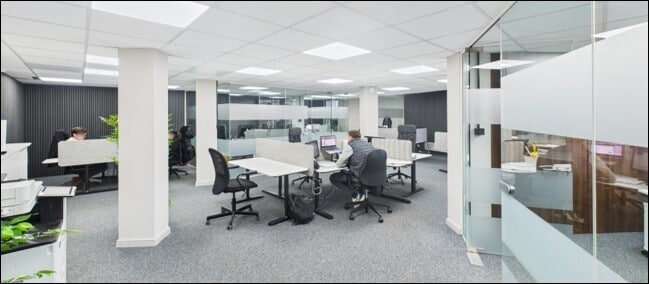 Internally, the subjects benefits from a high-quality fit-out, providing a mixture of open plan and cellular office space, benefitting from a carpet floor covering and a suspended tiled ceiling with tiled LED lighting incorporated throughout. The fit-out is further enhanced by ceiling-mounted heating tiles and a raised access floor with electrical outlets distributed throughout. The suite also benefits a kitchen/prep area and a dedicated boardroom. W/C facilities can be accessed via a communal close.