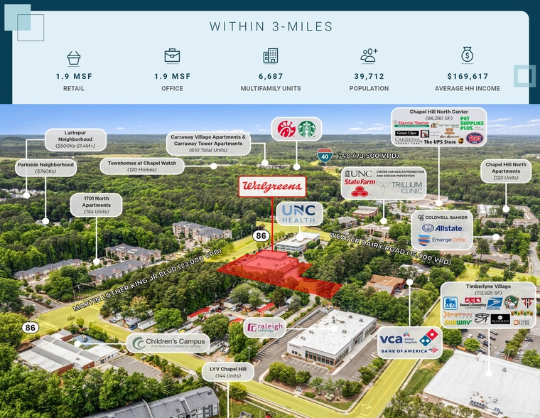 - Strategic Location | Part of the 3.29 AC Weaver Crossing Center with UNC Health