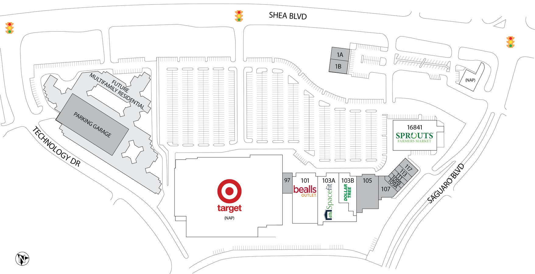 95,060-sf Target-anchored power center in the affluent Phoenix suburb of Fountain Hills, where seasonal population doubles for half the year Adjacent to 6.7-acre fully entitled 316-unit multifamily redevelopment National tenants include Bealls Outlet, Dollar Tree, and Sprouts Farmers Market Month-to-month flex/storage space available Outlot building available for lease or redevelopment