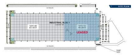 • ±627,130 SF • 40’ clear height • Cross-dock configuration • 56’ x 56’ column spacing • 60’ speed bays • 127 dock-high doors • 63 pit levelers • 2 grade-level doors • 186 trailer parking spaces • 518 additional trailer spaces available • 126 auto parking spaces • (2) 3-phase 4,000 amp services • Foreign-Trade Zone No. 171 • Tax Rate 1.56% NOTE • 150 Megawatts available • 1M GPD processed water available