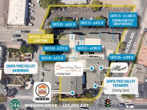 Formerly known as Denmarket Square, the newly remodeled and re-branded Founders Market is ready to welcome a dynamic mix of local artisans, culinary ventures, and boutique retailers. Anchored by the already successful CHOMP restaurant, The Coffee House by CHOMP, and The Santa Ynez Valley Creamery and production facility currently under construction. Founders Market is located at the eastern gateway to downtown Solvang at the intersection of Mission Drive and Alisal Road, this thoughtfully revitalized center offers a rare opportunity to join a curated tenant community in one of California’s most charming and heavily visited destinations. Other tenants include Standing Sun Wines & Tasting Room, The Giving Ink, Andrea’s Heart (custom jewelry store), and many second story vacation rentals and apartments. Turn-key Retail Spaces | High-traffic Location: · Well-configured, move-in ready spaces ideal for small specialty shops, services, and curated retail experiences. · Strong foot traffic from both locals and tourists, updated infrastructure, and an inviting design that honors Solvang’s unique heritage, this is the perfect setting for businesses looking to be part of the town’s next great gathering place. Final Leasing Opportunities Available: With four spaces remaining, we are seeking unique concepts that will complement the existing mix. Our most exciting opportunity is an approx. 1,580 SF - approx. 2,255 SF space with a large wraparound patio seating area to accommodate a distinctive Asian cuisine restaurant. The partners are seeking tenants for unique dining and specialty concepts to join this vibrant destination. Opportunities include an approx. 675 SF space ideal for a high-end sandwich shop, cheese and charcuterie market, or other specialty food purveyor. We also welcome interest from sit-down or takeout restaurants featuring Thai, Vietnamese, Korean BBQ, Indian, Brazilian, or Mediterranean cuisine. In addition, three smaller spaces are available for boutique operators, artisan makers, or lifestyle services that share our vision of building a dynamic, community-focused gathering place. Contact Listing Agent for further details.