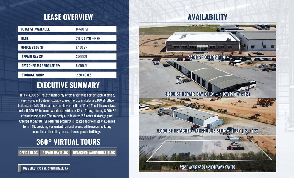 Offered at $12.00 PSF NNN, the property is located approximately 4.5 miles from I-49, providing convenient regional access while accommodating operational flexibility across three separate buildings.