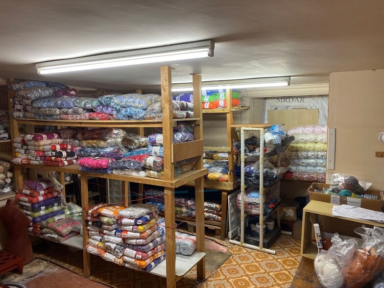 The property comprises a ground floor retail area trading as a wool shop with internal steps leading to basement storage and WC.