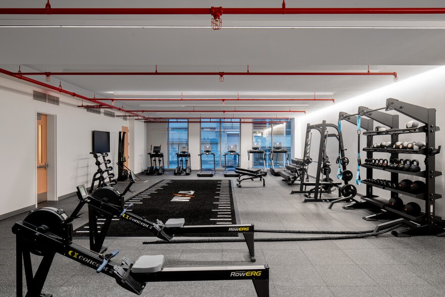 - 6,000 SF spa-quality fitness facility with spacious locker rooms and flex space for group classes or private training