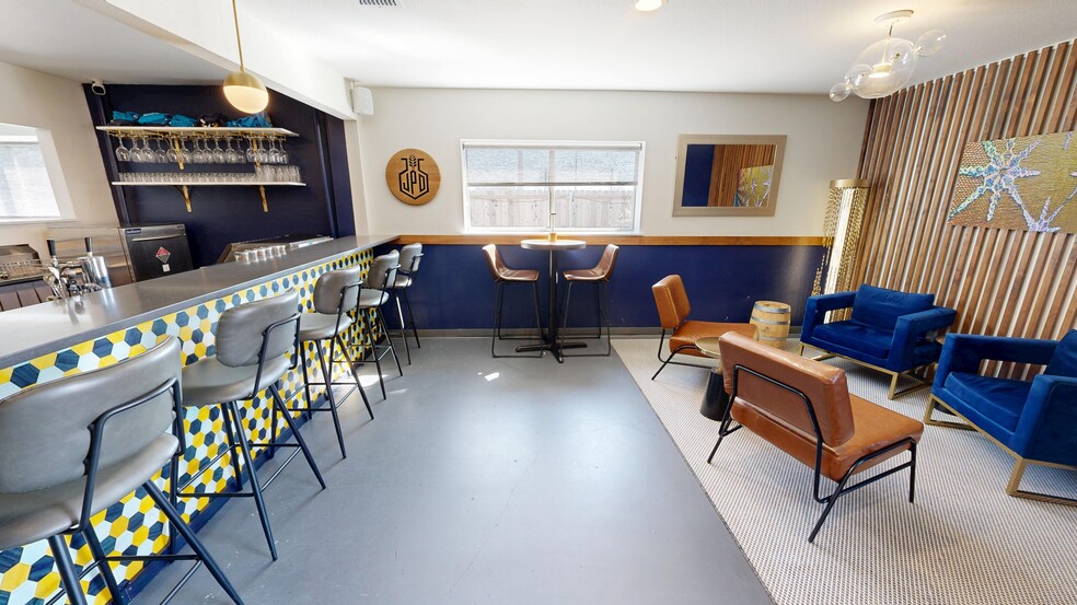 For buyers not interested in distilling, the property can be purchased without the equipment, allowing for easy conversion to an entertainment-focused venue. The site features a covered patio with a stage, multiple indoor and outdoor seating and lounge areas, and three shipping containers currently used for barrel storage that could be repurposed for various uses.