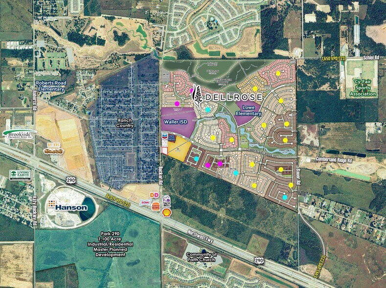 - New Shopping Center in the Dellrose master planned community - Convenient access located northwest of Hwy 290 and Grand Parkway - Dellrose spans 600 acres and is surrounded by existing and future residential with a void for retail, restaurant, and service users - Dellrose already has more than 1,200 homes in the community