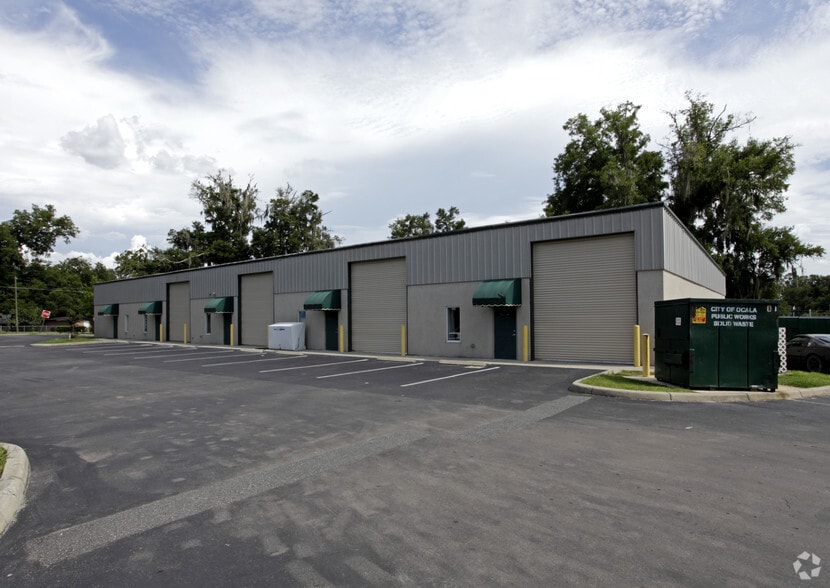 Excellent location off of Hwy 441/Pine Ave in Ocala offers warehouse, flex and office. Ideal for a construction company, church or storage. Zoning is B4 and M1. Building 1, facing Pine Ave, has 3 units with office up front, and warehouse space in the back. #100 is 7,870 SF. #102 is office-only space and is 1,250 SF. Three bay doors are on each warehouse space are 12 X 14. Building 2 is 9600 SF. There are five units (200-204) at 1,920 SF each with a 12x12 office and a bathroom. Two units are available for lease (#200, #202). Doors are 12 ft wide X 14 ft high.