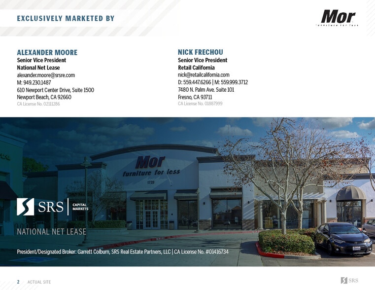 Mor Furniture 1720 W Olive Ave 21,710 SF Retail Building Merced, CA 95348 $6,499,248 CAD ($299.37 CAD/SF) 6.67% Cap Rate