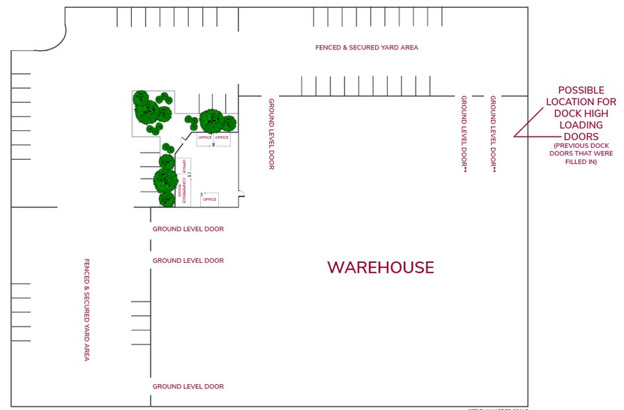 - Six ground-level loading doors with two possible dock-high positions.