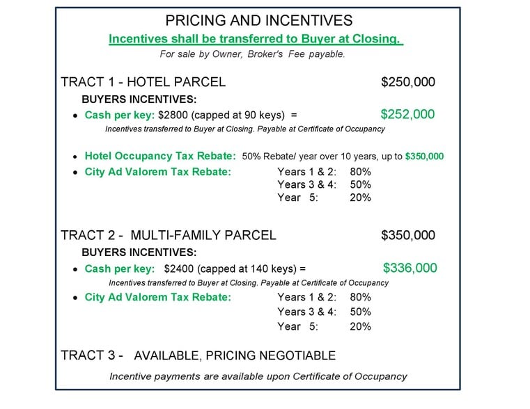 - Parcel may be purchased in whole or in part (MF, Hotel, or Other) Parcel has not been subdivided to allow for development flexibility.