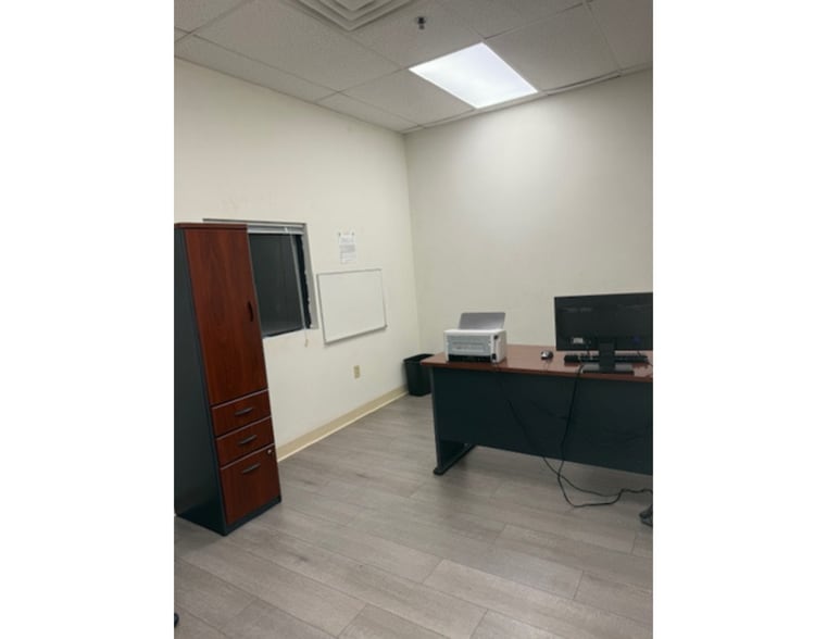 Office space featuring 5 offices, conference room area, break room, 2 bathrooms.