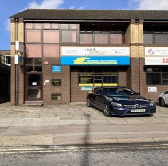 The property is a well-specified, self-contained first-floor office suite located at 181 Queensway, Bletchley, Milton Keynes. It is fitted with carpeted flooring, suspended acoustic ceiling tiles, fluorescent strip lighting panels, perimeter wall-mounted sockets, and gas central heating. The office is currently undergoing refurbishment to include new LED lighting and offers good staff welfare provisions, including a kitchenette and W/C facilities. Four dedicated car parking spaces are provided, and the suite is configured with two partitioned offices and an open-plan central core.