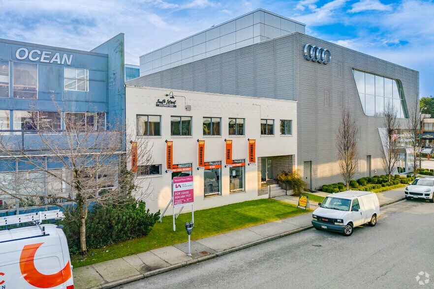 The property is located in the Armoury District — the area is with the Granville and Burrard Street districts. This area is populated by many high end service and retail businesses, including Ferrari, Lamborghini, Audi, Jaguar, Land Rover, Weissach Porsche dealerships, architects, design studios, and Living Space, Brougham Interiors, Creative Home Furnishings, Bradford Hardware, East Indian Carpets, Ann Sacks, Prado Cafe, Bel Cafe, Luminosa Lighting, Banner Carpets are located close by.