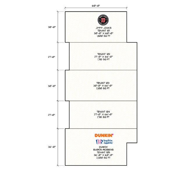 - Tenants include Dunkin’ and Jimmy Johns!