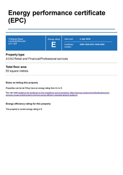 This two-storey brick-built retail and office property occupies a prime position on Market Street, a busy thoroughfare in Loughborough town centre. The location benefits from strong footfall and excellent connectivity to local amenities and transport routes, making it ideal for businesses seeking visibility and accessibility. The property combines traditional construction with practical internal layouts, offering flexibility for a range of Class E uses.