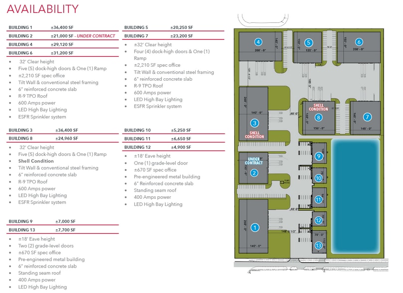| 1st Fl - Bldg 13 | 7,700 SF | Industrial | Partial Build-Out | Jul 2026 |