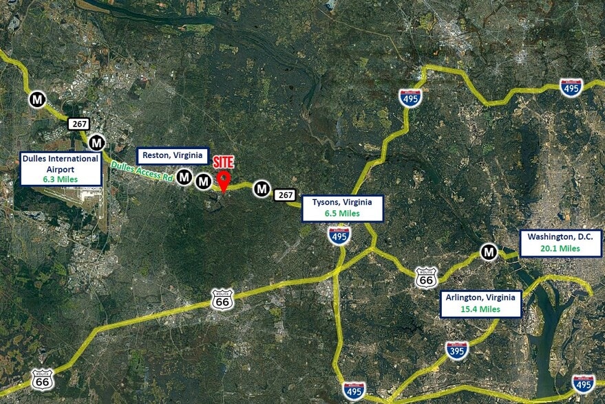 HIGHLIGHTS •Prime Reston Location – Located in the heart of the Dulles Tech Corridor with direct access to the Wiehle-Reston East Metro Station, I-495, and Dulles Toll Road. •Minutes to the Dulles Toll Road providing direct connectivity to Tysons, Arlington, and Washington, D.C. •Strong proximity to Reston Town Center featuring dining, retail, hotels, and entertainment amenities •Surrounded by a dense, affluent residential population supporting a strong employee and customer base •Close proximity to major employers including tech, government contractors, and Fortune 500 companies •Near Washington Dulles International Airport—approximately 10 minutes away •Walkable and amenity-rich environment with nearby restaurants, fitness centers, and retail services