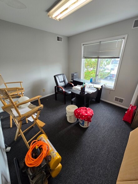 a well-designed second-floor office suite ideal for professional use. With approximately 810 square feet, this space is both functional and inviting, featuring a balanced mix of private offices, open areas, and amenities. Key Features: Reception Area: A welcoming entry space, perfect for greeting clients and visitors. Conference Room: Spacious meeting room designed for collaboration and presentations. Private Office: Enclosed office for focused work or executive use. Dedicated Office/DM Room: Flexible space that may be used as an additional office or workroom. Break Area with Deck Access: Includes a small kitchen/prep space with direct access to a 12.5’ x 8’ deck—great for breaks or fresh air. Restroom & Utility/Closet Space conveniently located within the suite. Stair Access: Easy second-floor access from the main entry. Highlights: Total Area: Approx. 810 SF Functional layout with both private and collaborative spaces Natural light and outdoor deck access Ideal for small businesses, professional firms, or creative workspaces This unit offers a turnkey opportunity for businesses seeking a professional environment with modern conveniences in a compact footprint.