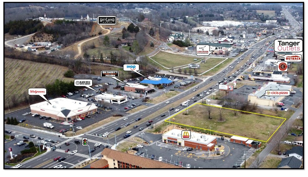 1.19 +/- Acre Parkway Property 1819 Parkway 1.19 Acres of Commercial Land for Lease in Sevierville, TN 37862