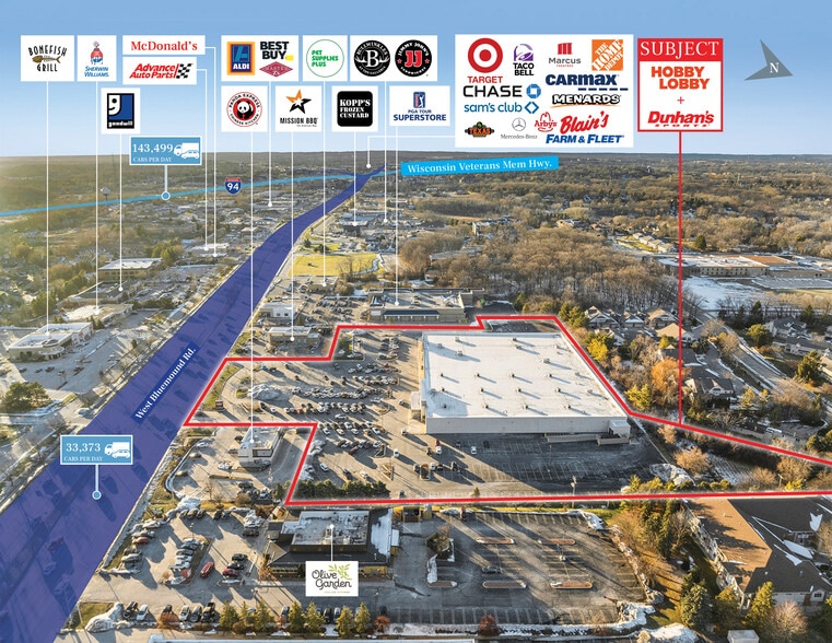 Strategically located along W. Bluemound Road / U.S. Highway 18, the asset benefits from its position on one of Brookfield’s primary retail corridors, featuring traffic counts in excess of 33,000 vehicles per day. The site also offers excellent regional connectivity via the nearby I-94 interchange, which serves more than 143,000 vehicles daily and provides direct access throughout the Milwaukee metropolitan area. Recent roadway resurfacing and infrastructure upgrades along the Bluemound Road corridor have further improved accessibility, visibility, and long-term functionality for retail tenants.