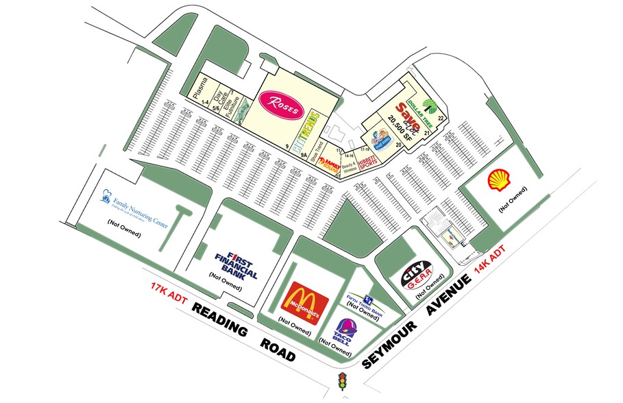 Retail space for lease in Gator Investments owned Hillcrest Square in Cincinnati, OH. Hillcrest Square is anchored by Roses, Family Dollar, Save-a-Lot, Dollar Tree, Citi Trends & Hibbett Sports. This grocery anchored center is located in NE Cincinnati in the Roselawn Area at the intersection of Seymour Avenue & Reading Road. Hillcrest Square is located off of I-75 and Route 561 on Seymour Avenue in Cincinnati, Ohio.