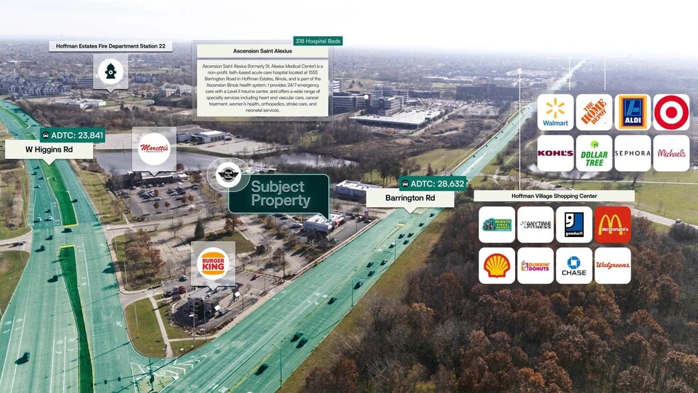 Surmount is pleased to present the exclusive listing for a Steak n' Shake located at 1825 Barrington Road, Hoffman Estates, IL 60169. The site consists of roughly 3,750 rentable square feet of building space on an estimated 1.15-acre parcel of land. This Steak n' Shake is subject to an original 18-year Triple Net (NNN) lease, which commenced 7/4/1998. The current annual rent is $125,377 and the tenant has two 5-year extension options remaining.