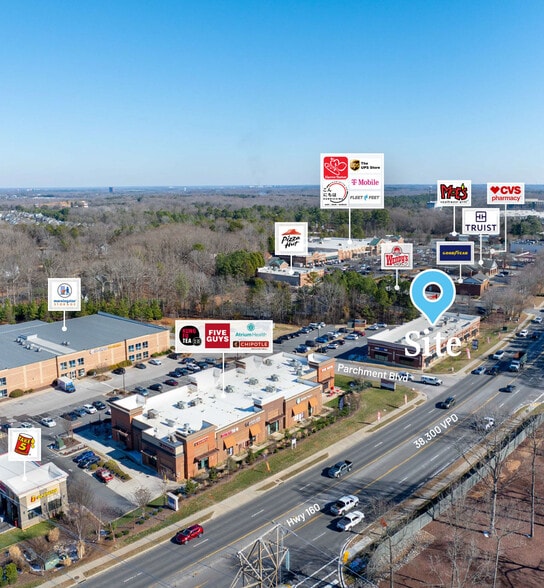 +/- 1,703 SF retail space on Highway 160 West in Fort Mill, South Carolina, directly across from Baxter Village. The property offers exceptional visibility and signage opportunities along one of Fort Mill’s primary retail corridors. The site offers direct access from Highway 160 and is less than a mile from Interstate 77, allowing for convenient regional connectivity and strong traffic exposure. Surrounded by dense residential growth and established retail, the location benefits from consistent daily traffic counts and proximity to one of the area’s most active mixed-use developments. Ideal for a variety of retail, service, or professional uses seeking a highly visible presence in a rapidly growing submarket.