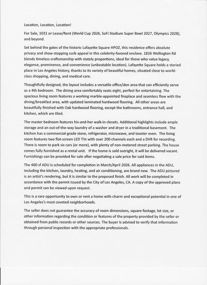 For Sale, 1031 or Lease/Rent (World Cup 2026, SoFi Stadium Super Bowl 2027, Olympics 2028), and beyond.