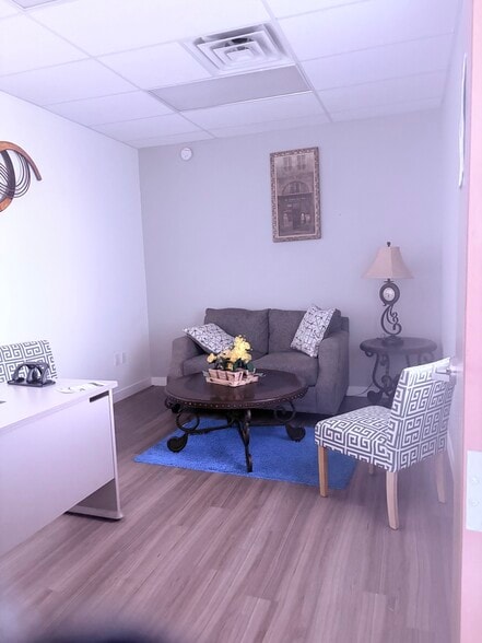 Space is built out with a large reception area, 6 private offices, storage area and an ADA restroom. NNNs are $6/SF/yr. Space is currently vacant.